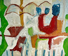 Before fully dedicating herself to art, Julia spent nearly a decade as an interior designer, working in and beyond NYC. Immersed in a world of design and aesthetics, she was constantly surrounded by art in various forms, which ultimately rekindled her passion for creating. Today, she works in mixed media, blending acrylic paint, oil sticks, watercolor, graphite, and collage to build layered, textural compositions that evoke both structure and impermanence.