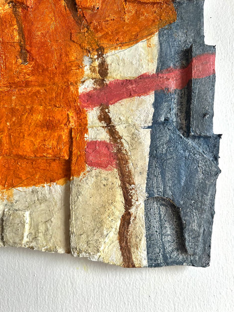 Acrylic paint, graphite, paper pulp on cardboard on canvas